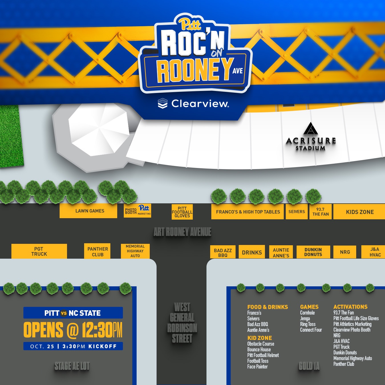 Panther Club staff & Pitt Spirit Squad members will be prowling the parking lots 3 hours prior to kick-off to award the "Tailgate of the Game" presented by Pennsylvania Lottery. The winner will receive a PA Lottery & Pitt Swag Bag and get their picture on the videoboard!